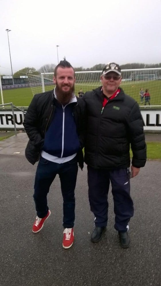 “There are so many great memories of Yetti, in his pomp scoring goal after goal but a couple of fun memories include watching him score a hat-trick at Treyew Road (can’t remember who the opposition was) in an early FA cup round – we watched with Steve’s parents but had to move away from his mum in embarrassment when she kept shouting “Stewart “ at the top of her voice – way too formal for Yetti. Another time was when Yetti was playing for Weymouth and a whole crowd of us turned up at a Truro match there wearing Yetti beards in his honour- we were hoping to persuade him to come back to Truro I think. Now of course, he is back where he belongs and bringing the story bang up to date he started the singing in the clubhouse after the win away at Kings Langley a couple of weeks ago!”